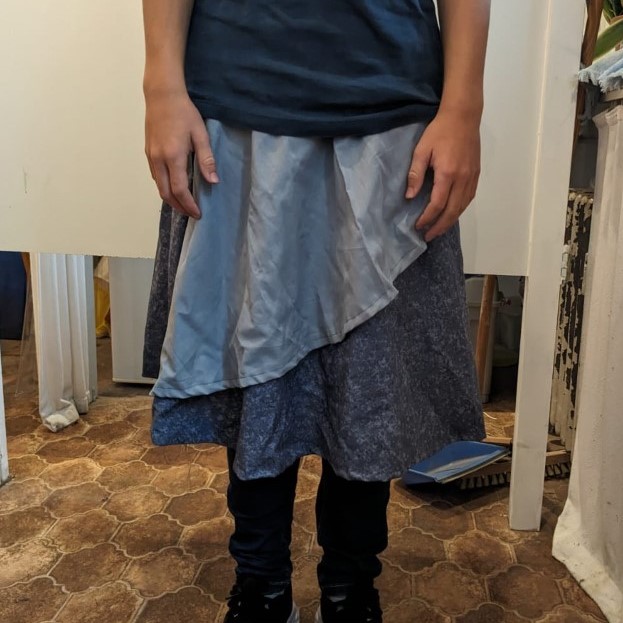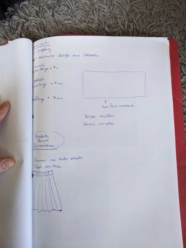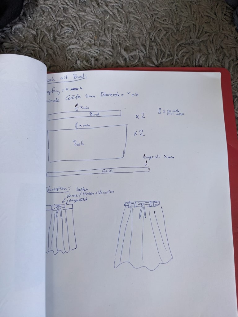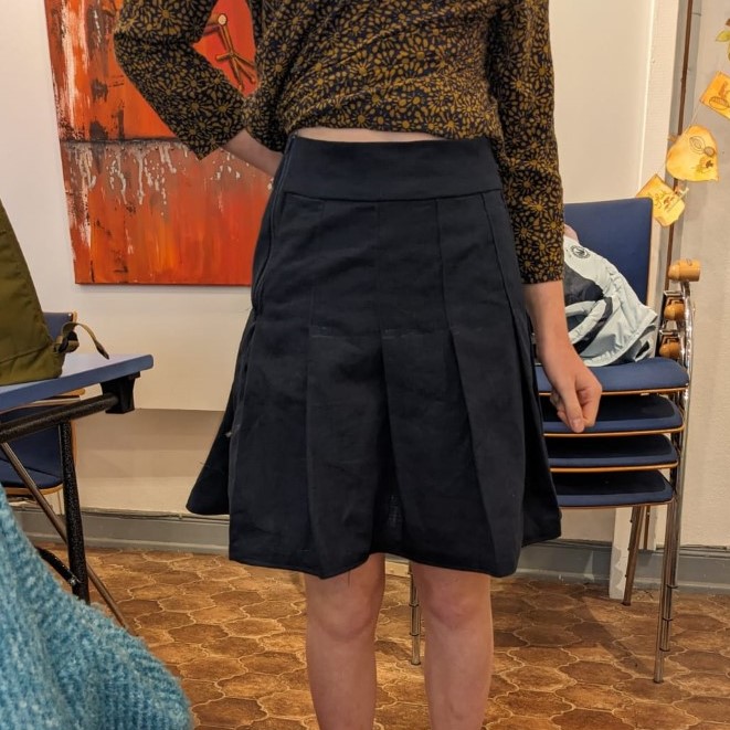 Hier wurde sich dazu entschieden, Röcke zu nähen. Da die Teilnehmer größtenteils Nähanfänger waren, hatte ich eigentlich geplant, einfache Schnittmuster zu wählen. Jedoch ließ ich mich dann noch zu komplexeren Schnitten überreden. Der vom Schnittmuster wohl aufwändigste Rock war der blaue Faltenrock.