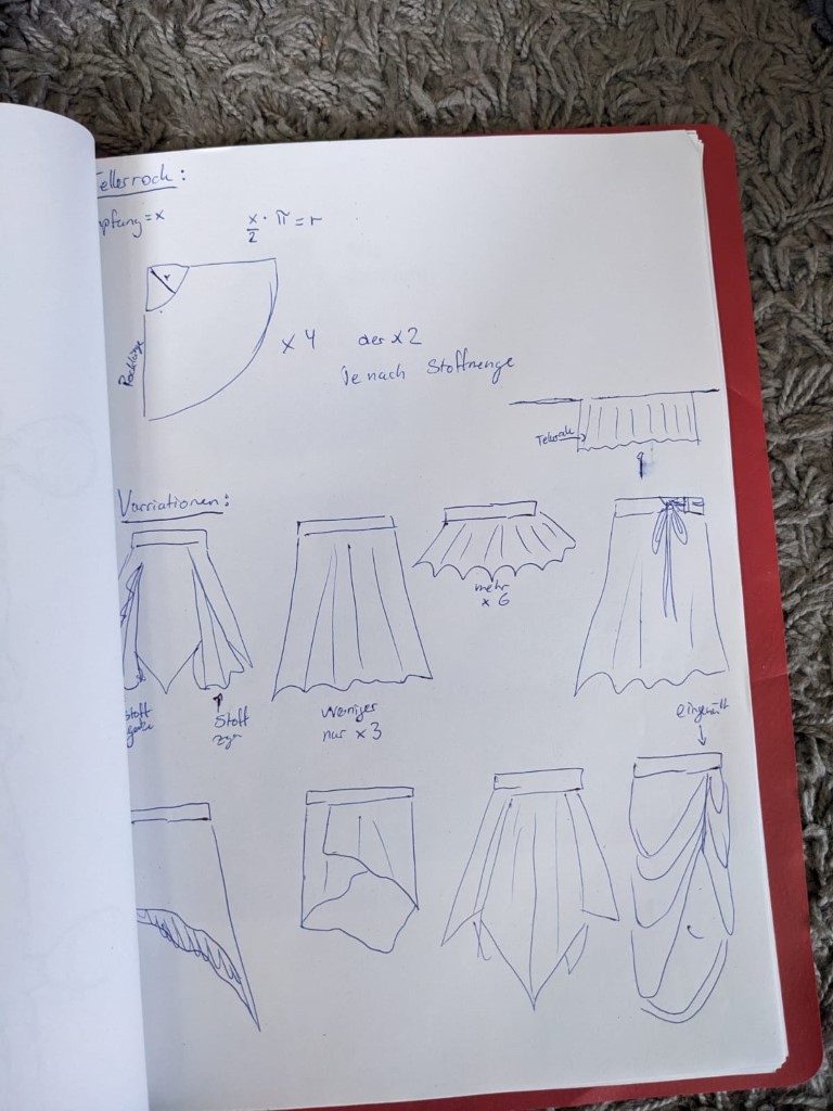 Hier meine Referenzen und Schnittmustervorgaben, die am ersten Tag zur Orientierung bei der Wahl des Rockes dienen sollten.