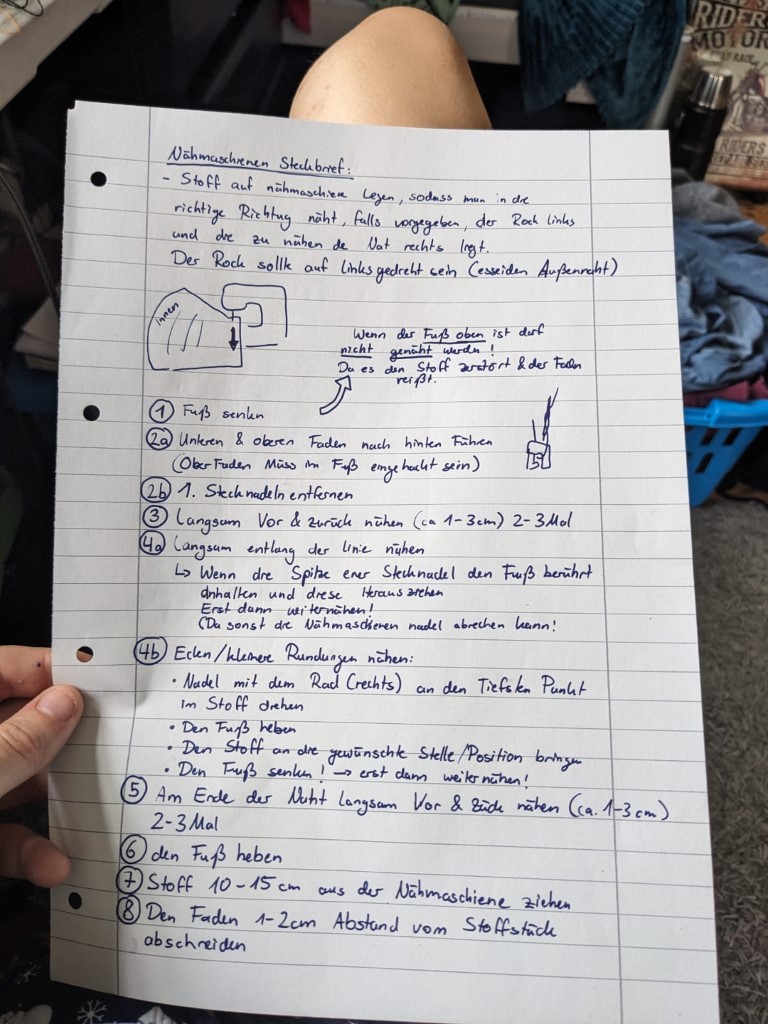 Dieser letzte Nachholtermin war dennoch für die Meisten ein schöner Abschluss, da das gemeinsame Nähen große Freude bereitete. Gegen Ende waren jedoch alle hungrig und erschöpft und es wurde in der naheliegenden Pizzeria bestellt, sodass es gestärkt von der Pizza weiter gehen konnte und auch die letzten Röcke fertiggestellt wurden.